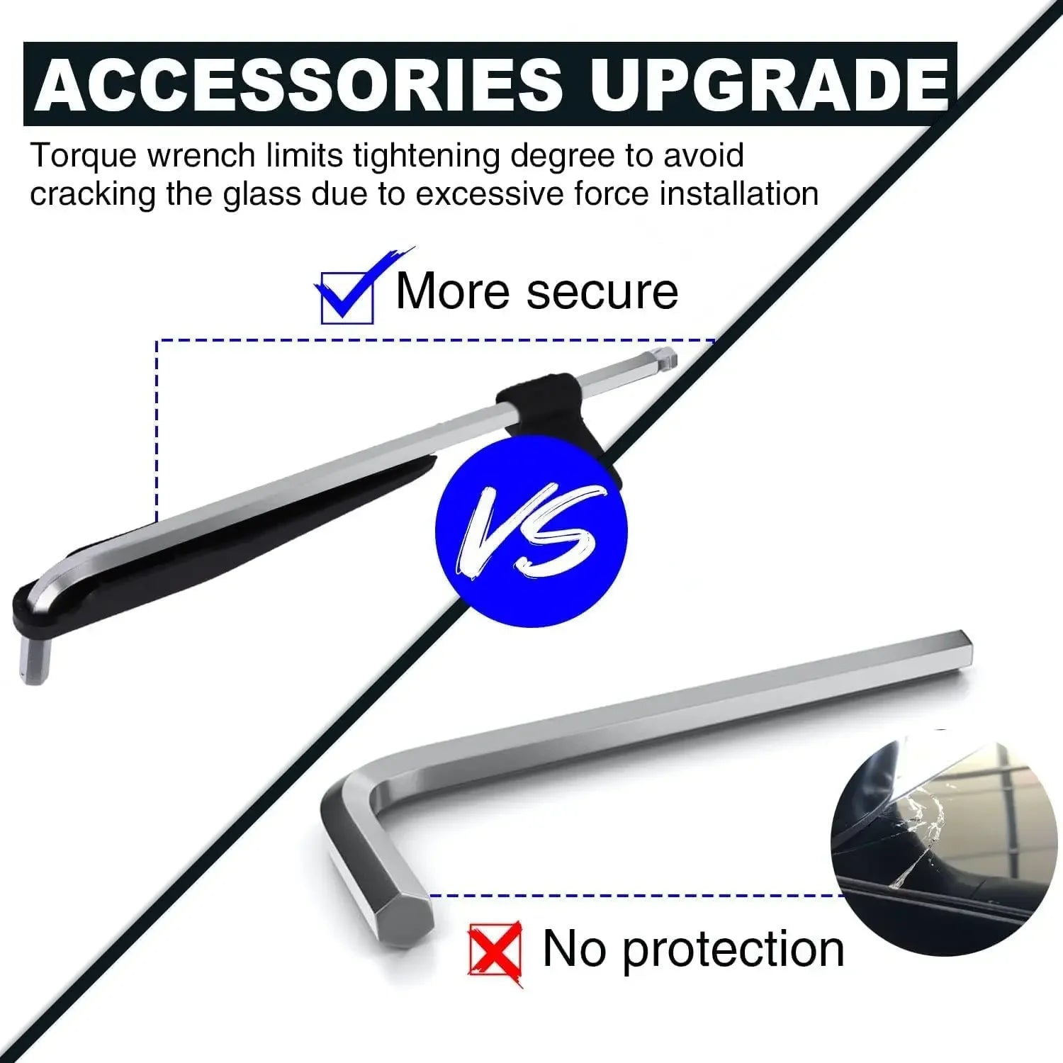 - Лесен монтаж без пробиване означава, че можете бързо да го инсталирате и да пътувате с увереност — освен това подобреният гаечен ключ защитава стъкления ви покрив от повреди.