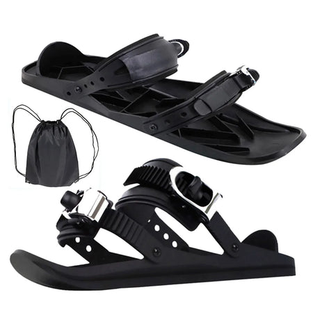Изпитайте тръпката от зимата с Мини къси ски кънки Регулируеми скибордове – компактен всичко-в-едно зимен комплект, който съчетава ски и кънки на лед в едно лесно за използване устройство. Можете да прикрепите тези скибордове към съществуващите си зимни обувки или ботуши, използвайки регулируеми катарами, превръщайки всяка обувка в скибордове за секунди. С универсален размер, който пасва на US 6–13 и EU 35–47, вече няма нужда от обемисти ски ботуши. Изработени от издръжлив ABS+сплав и с метални ръбове за изключително хващане и контрол, тези скибордове издържат на разнообразни условия, като ви държат в безопасност на склонове, паркове или ледени тротоари. Леки, портативни и удобни за чанта, те са перфектни за ски, кънки, снежни паркове, походи, забавления в двора и ежедневни зимни приключения.