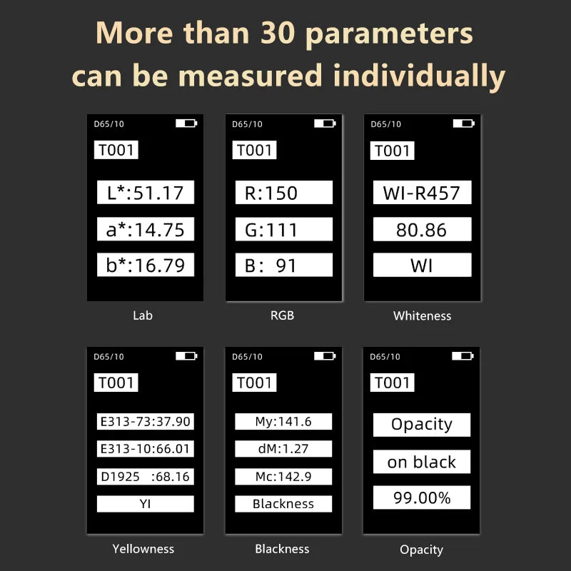 - Точно съвпадение на цветове в покрития: измервателният отвор от 8 мм осигурява надеждни показания дори за малки пробни площи, помагайки ви бързо да съвпаднете цвета.