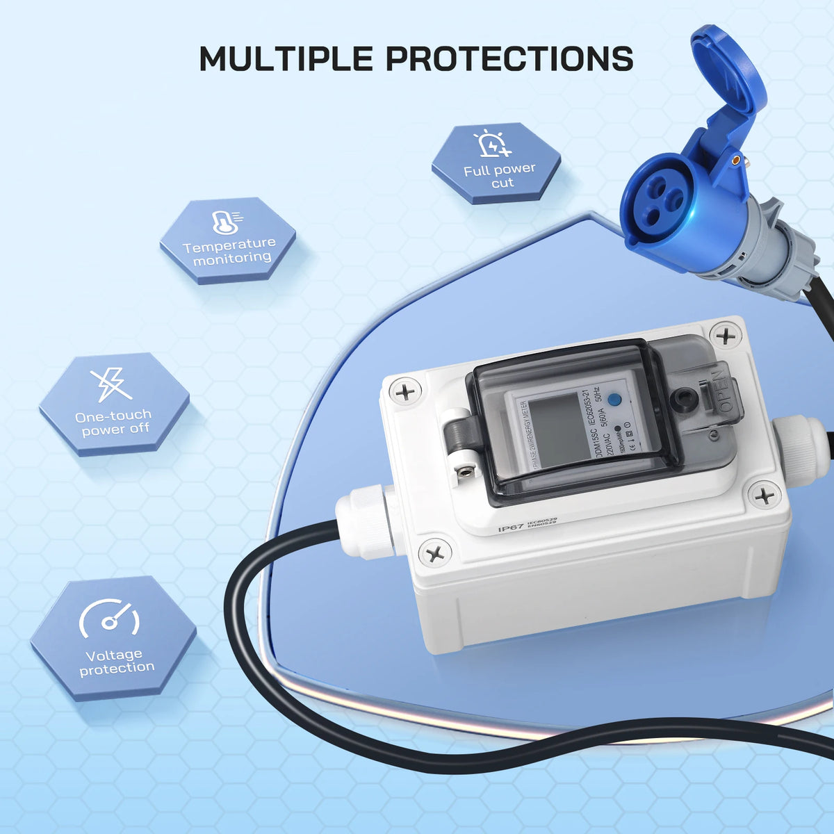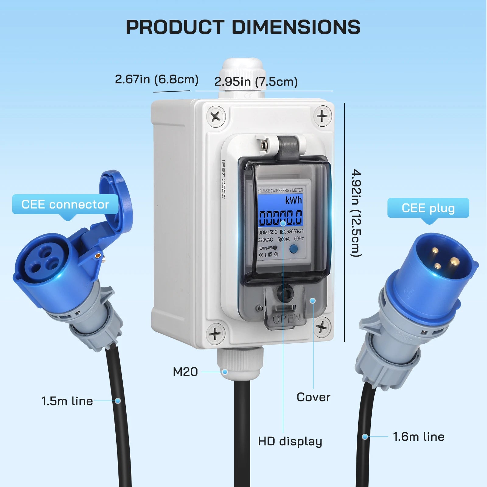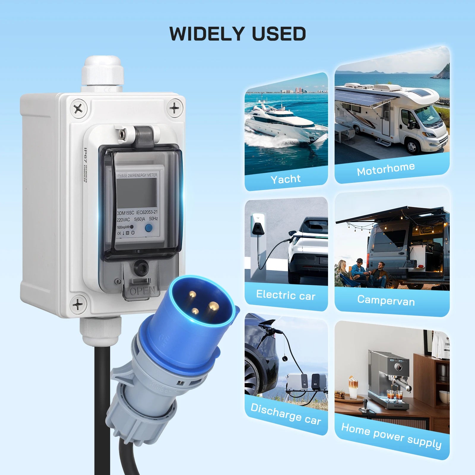 - Не превишавайте 16A рейтинг. Уверете се, че метърът е свързан към 230V захранване с 16A CEE 3-пинов щепсел.