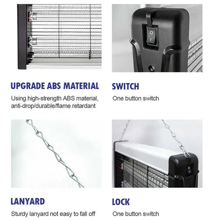 - Защита от вредители в закрити помещения: ефективно отблъсквайте комарите и мухите с UV LED примамка и здрава високо напреженова мрежа, помагаща за намаляване на ухапванията и неприятностите.