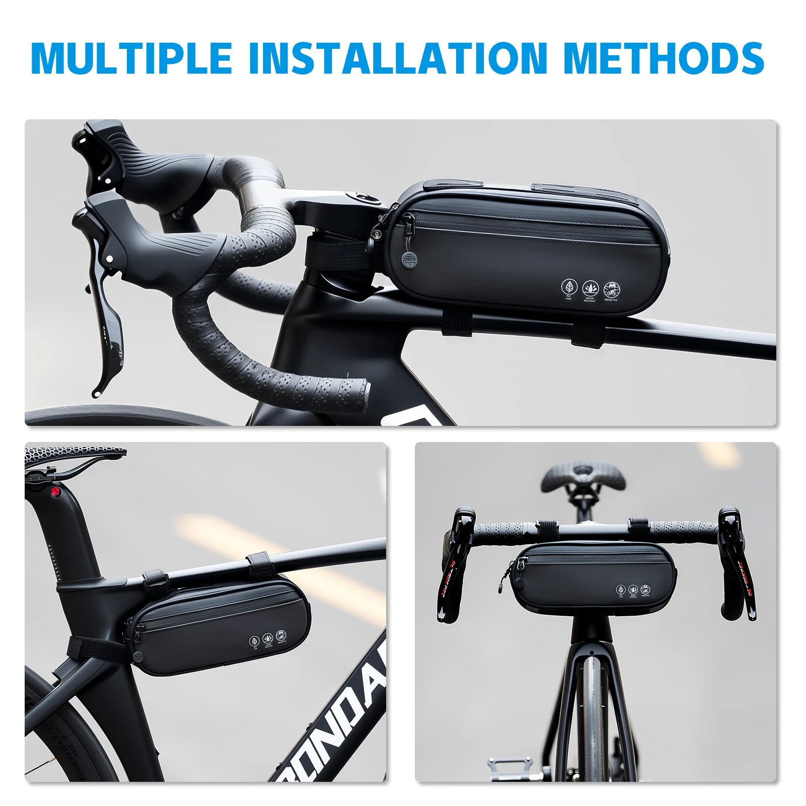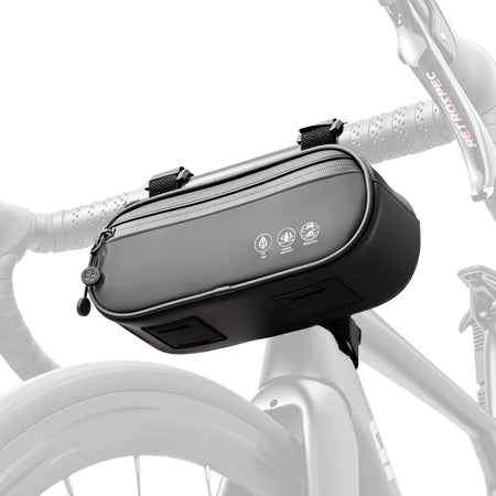 Проектирана за многофункционалност, тя пасва на планински велосипеди, шосейни велосипеди, сгъваеми велосипеди и скутери. Трите точки на велкро фиксация държат чантата сигурно на място, дори по неравни пътища, така че можете да карате с увереност. Нейният водоотблъскващ дизайн помага да се запазят предметите сухи по време на лек дъжд, а отражателните ленти увеличават видимостта за по-безопасни нощни карания. Широкото 24 см отваряне позволява лесен достъп до вашия телефон, ключове или инструменти за ремонт, докато тесният дизайн на тялото осигурява, че няма блокиране на краката, докато педалирате.