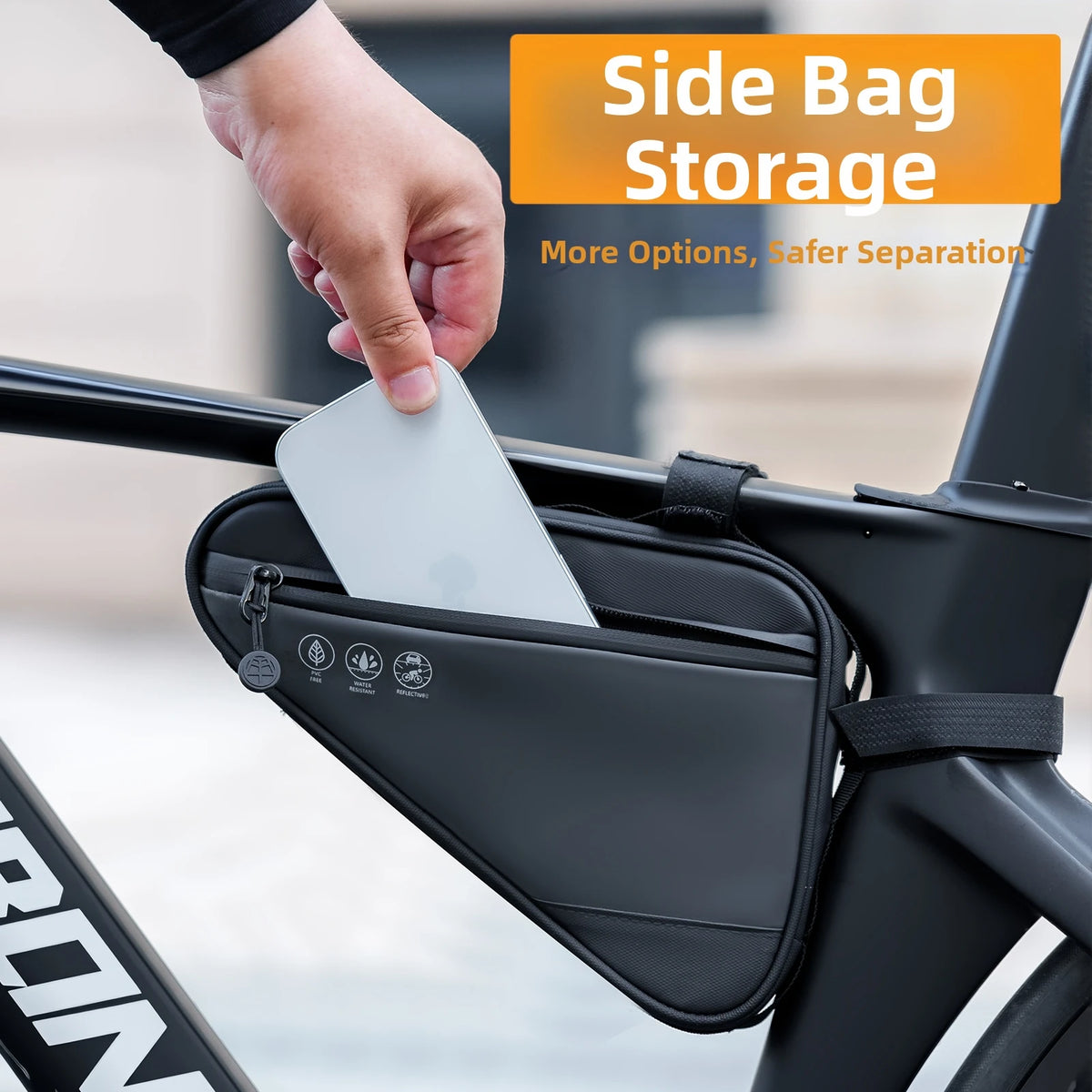 Запознайте се с OFFBONDAGE OFF-AM401 Водоустойчив Кожен Отразяващ Чанта за Велосипед — компактен, здрав триъгълен сак, проектиран да поддържа вашите основни вещи сухи, организирани и на лесен достъп при всяко каране. Изработен за шосейни, планински и градски велосипеди, този сак съчетава практично съхранение с елегантен, текстуриран вид, който се вписва безпроблемно във вашата рамка. Неговият водоотблъскващ дизайн защитава вашите вещи от дъжд и пръски, така че можете да карате с увереност при всякакви условия.