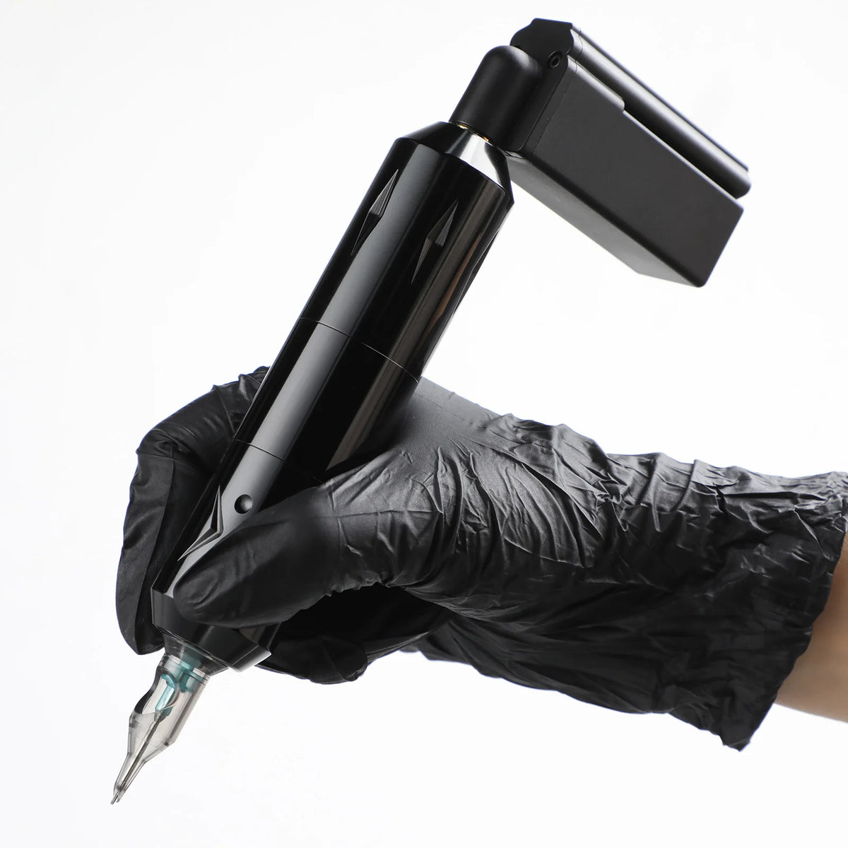 Компактен, безжичен електрически татуировъчен молив, проектиран за начинаещи художници, които искат прецизност, комфорт и преносимост. Стилен черен алуминиев корпус с професионално усещане и лесно управление.