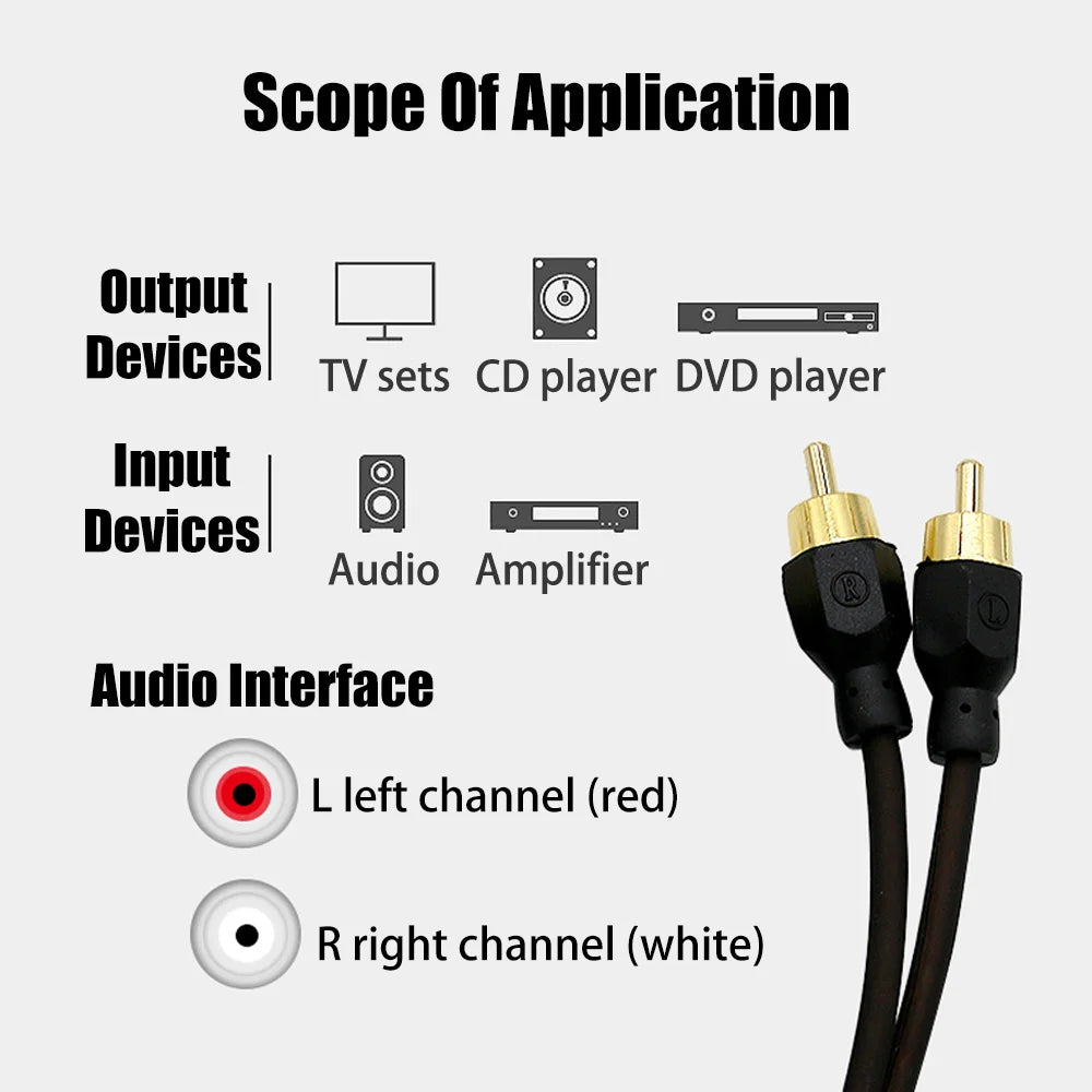 - Използвайте като надеждна замяна за остарели или повредени RCA връзки в главни устройства, усилватели или субуфери.
