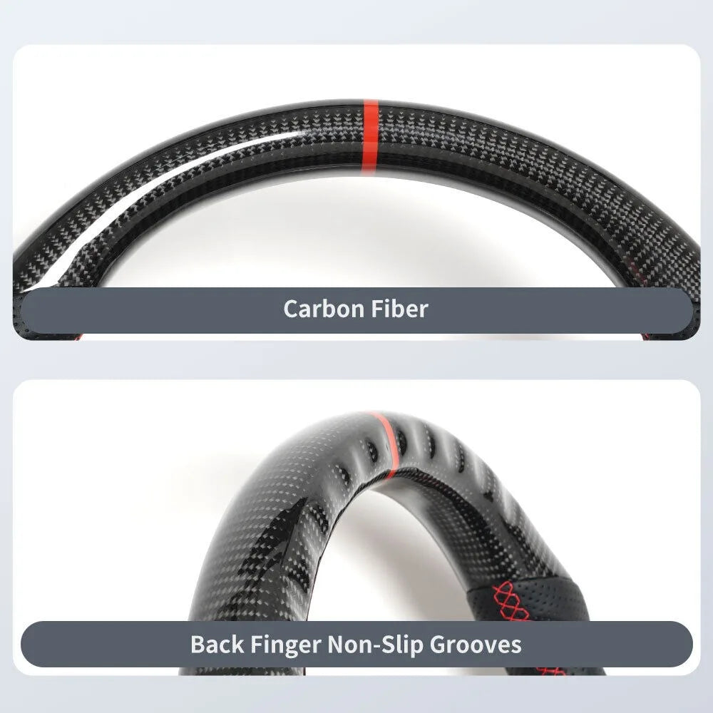 - Изберете прецизно усещане за шофиране с волан, благодарение на плоския D-тип дизайн и ярките червени шевове за бърза ориентация.