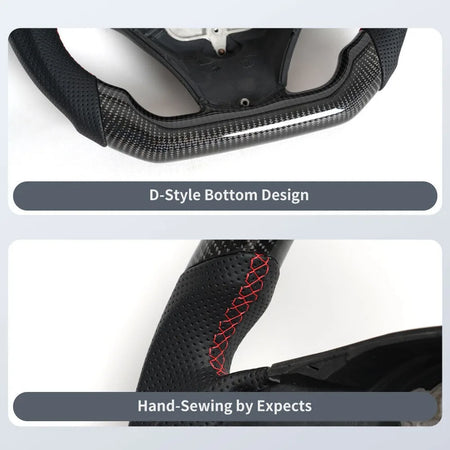 Подобрете шофирането с BMW с 100% ново волан от истински карбон, обвито в перфорирана кожа за премиум, вдъхновено от състезания усещане. Това волан съчетава лек карбон с издръжлива перфорирана кожа, за да осигури изключително сцепление, подобрена реакция и впечатляваща интериорна актуализация. Изключителният плосък D-тип състезателен дизайн, смелите червени шевове и червената лента на 12 часа осигуряват както стил, така и интуитивно подравняване за бързо и уверено управление в всяка шофьорска ситуация.