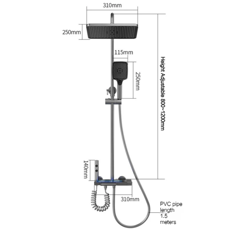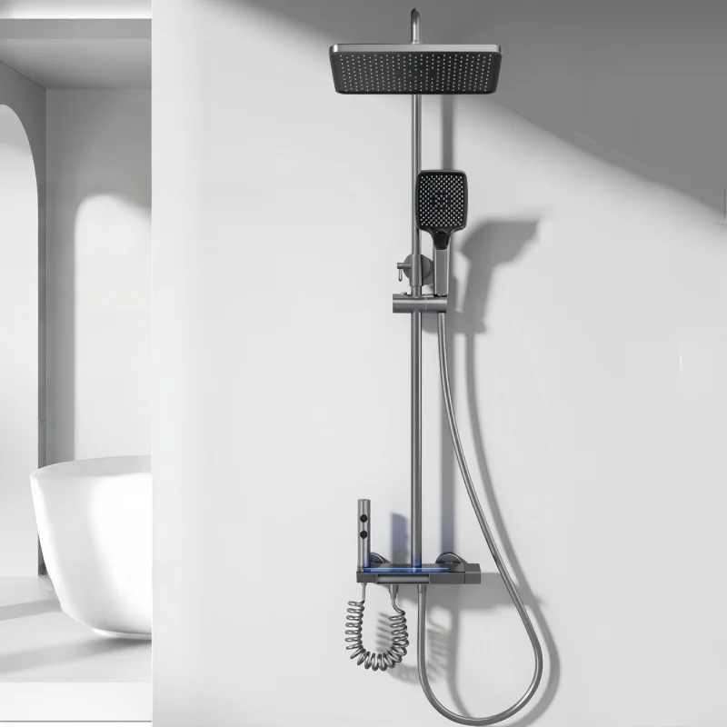 Горният душ може да се регулира универсално, ръчният душов държач може да регулира височината и ъгъла на наклона, което е подходящо за различни нужди на потребителите.