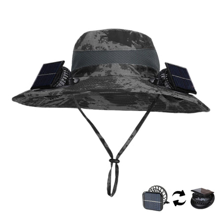 Слънчево захранвано шапка с вентилатор с 3 режима и широк ръб за открито