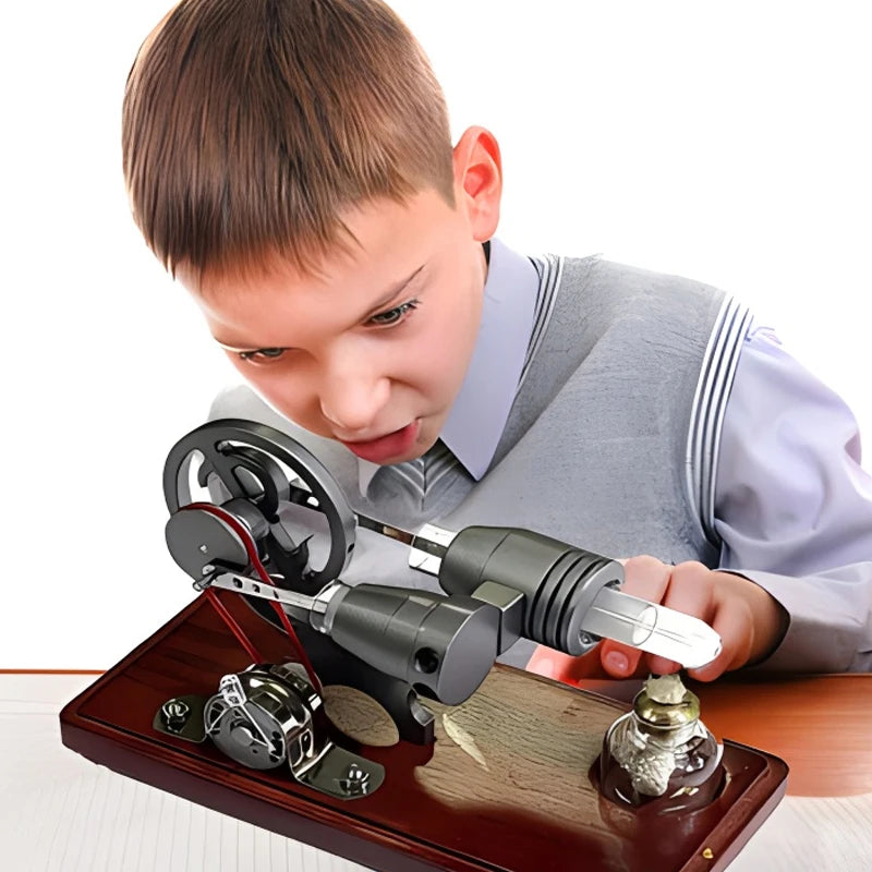Открийте комплекта за модел на Стърлинов двигател за образованието по физика — метална научна играчка за самостоятелно сглобяване, предназначена да илюстрира термодинамиката чрез практически опит. Този модел в мащаб 1:10 демонстрира работещ Стърлинов двигател, който превръща топлината в движение и превръща теорията в осезаемо разбиране. Изработен от здрав метал и подходящ за полово неутрална употреба, той е идеален за любители на науката, студенти и преподаватели — препоръчва се за възраст 14+ и 18+.