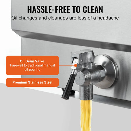 - Лесно почистване и поддръжка: Неръждаемата стомана извън и предният дренажен клапан опростяват почистването и смяната на маслото; не забравяйте да премахнете защитното фолио преди първото използване и да поддържате устройството сухо и чисто след употреба.