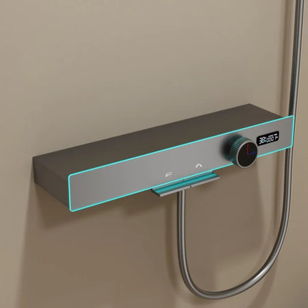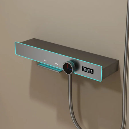 Душ комплект с дисплей за температура – Безопасен дисплей на температурата — Съвременен хромиран душ комплект с лесен за четене дисплей за температура и регулируем по височина дизайн за по-безопасни, по-комфортни душове.