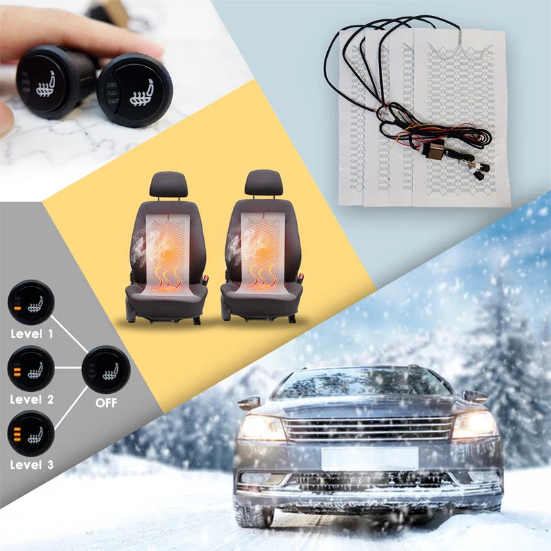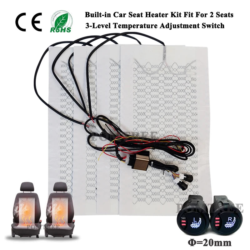 Универсален комплект за отопление на автомобилни седалки 12V за 2 седалки, 27W въглеродни влакна отоплителни подложки