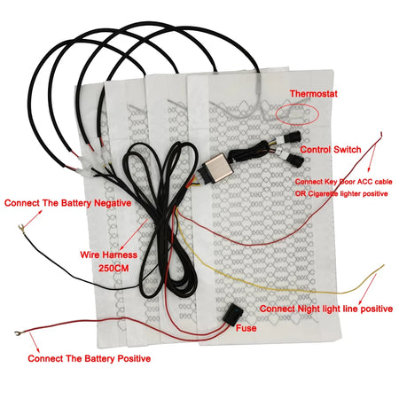 Останете топли при всяко пътуване с универсалния комплект за отопление на автомобилни седалки 12V за 2 седалки. Този комплект за самостоятелно сглобяване използва нагревателни подложки от въглеродни влакна, за да осигури бързо и равномерно затопляне на гърба и дъното на всяка седалка. Проектиран да пасва на повечето 12V превозни средства с кожени седалки, той предоставя целенасочен комфорт за есенните и зимните пътувания. Всяка седалка получава две нагревателни подложки (една на гърба, една на дъното) за пълно покритие, а конструкцията от въглеродни влакна осигурява бързо загряване, издръжливост и устойчивост на корозия.