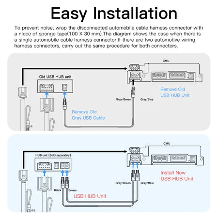Преди да инсталирате, проверете версията на фърмуера на вашия CMU. Фърмуерът трябва да бъде актуализиран до версия v70.00.21 или по-нова; ако софтуерът ви е по-стар, актуализирайте го първо, използвайки предоставения PDF наръчник. Не прекратявайте процеса на актуализация и имайте предвид, че след като CMU е свързан с USB хъба, някои актуализации може да не са възможни. Този комплект включва един комплект кабели C922-V6-605A и един USB хъб TK78-66-9U0C. Той е съвместим с модели Mazda от 2014 до 2020 г. (включително MX-5, CX-3, CX-5, CX-9 и CX-8) и поддържа както CarPlay, така и Android Auto с гласово управление и управление от волана за по-безопасна работа без ръце.