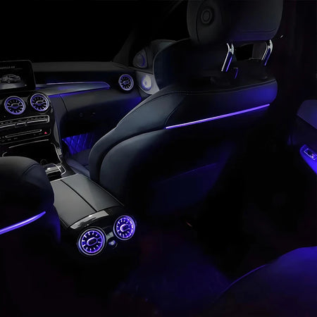 Подобрете интериора на вашия Mercedes-Benz с осветлението на облегалката на седалката, модул с 64 цвята LED, проектиран да синхронизира с OEM осветлението на вашето превозно средство. Проектиран за C-Class W205 (2015–2021), E-Class W213 (2017–2023) и GLC X253 (2015–2022), този модул, изработен от ABS, се инсталира в облегалката на седалката, за да излъчва меко, равномерно сияние, което съответства на съществуващата цветова палитра на автомобила. Насладете се на единен, премиум интериор през нощта, с 64 цветови опции, за да зададете настроението - от спокойни амбър до ярки сини - докато поддържате интериора си перфектно интегриран с фабричната осветителна система. Ползи и съвети