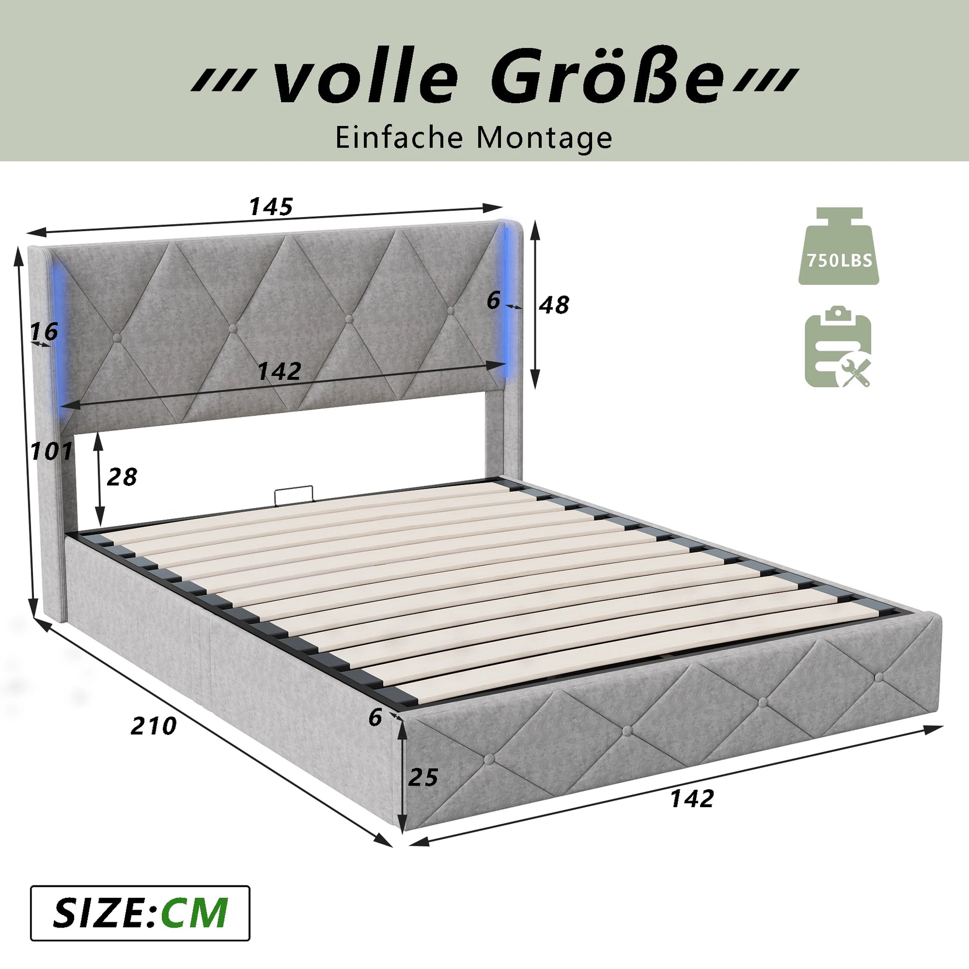Леглото е проектирано с практично, спестяващо място съхранение. Модерна система с въздушен прът позволява да повдигнете рамката и да разкриете просторен подматрачен обем, идеален за сезонни дрехи, завивки, багаж и други необходими вещи. Това поддържа спалнята ви подредена и максимизира наличното пространство без да жертва стила. Изградено за дълготрайна стабилност, рамката разпределя равномерно тежестта, за да поддържа матрака ви с времето, така че да се наслаждавате на комфортен и надежден сън.
