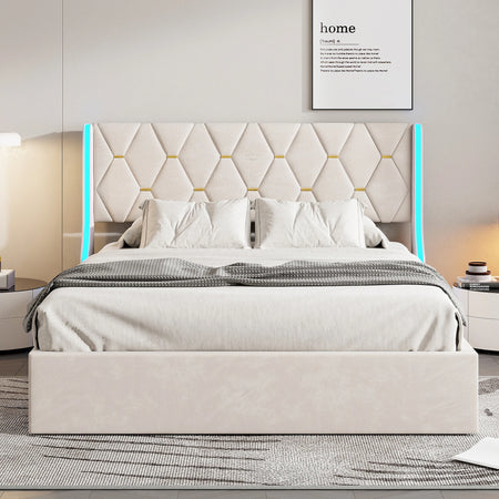 Открийте Urban Luxe 160x200 см рамка за легло с LED лента в бежово с място за съхранение — стилен и практичен център за вашата спалня. Тази рамка съчетава топла бежова велурена подплата с здрава MDF и метална рамка, за да осигури комфортен и привлекателен вид, който ще обичате да виждате всяка сутрин. Мекото, елегантно покритие създава уютна атмосфера, докато вграденото място за съхранение ви помага да държите одеяла, възглавници и спално бельо подредени.