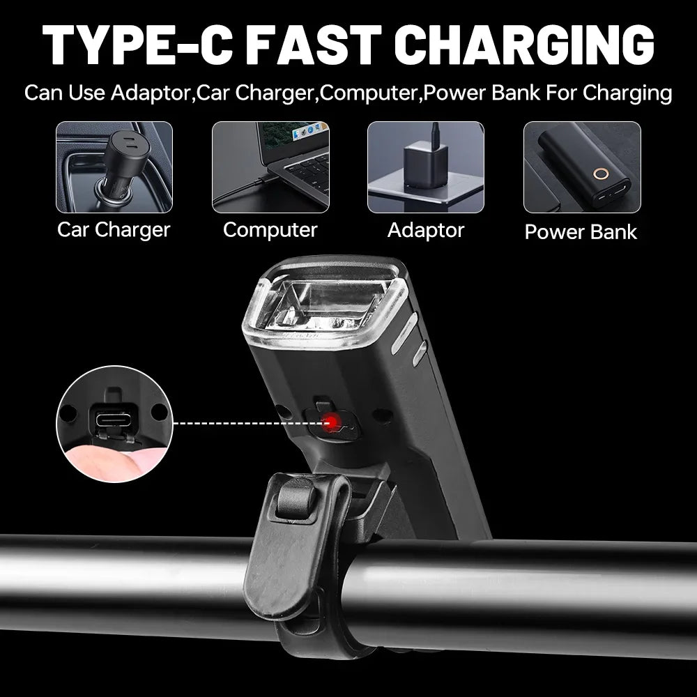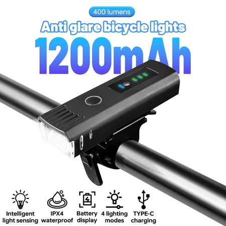 Предната светлина X-TIGER QD-5901 за велосипед комбинира компактен дизайн с мощна видимост, за да ви държи в безопасност при всяко каране. Изработена с издръжливо ABS тяло, тази предна светлина осигурява надеждна яркост от 400 лумена и обхват на осветление от 200 метра, помагайки ви да забележите препятствия рано и да останете видими за другите на пътя. Захранва се от вградена литиева батерия 1200mAh и се зарежда чрез USB-C, така че можете да зареждате бързо от лаптоп, преносима батерия или стенен зарядно. Вграден индикатор за батерията ви информира за оставащата мощност, елиминирайки изненадващи прекъсвания по време на каране.