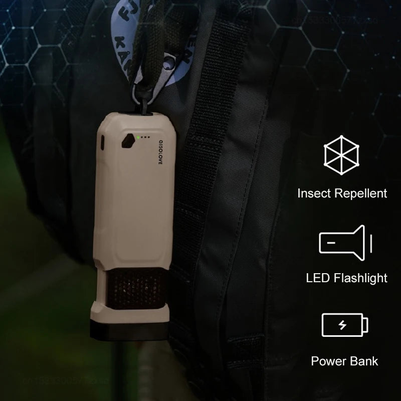 Създаден за приключения на открито и практическа употреба на закрито, неговият ултразвуков репелент помага да се предотврати появата на комари без химикали, докато вграденото LED фенерче осигурява надеждно осветление, а USB акумулаторната батерия поддържа вашите устройства заредени в движение.