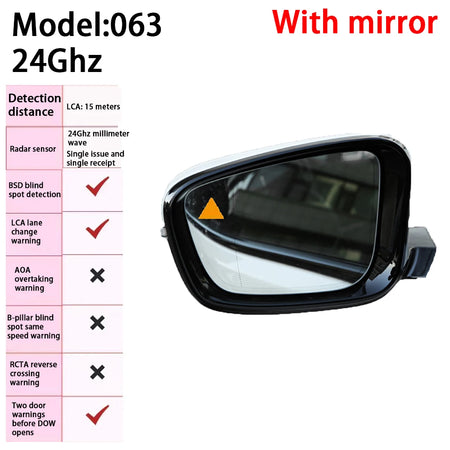 - Увеличава безопасността при смяна на лента, като предоставя навременни предупреждения, когато превозно средство или обект влезе в мъртвата ви точка.