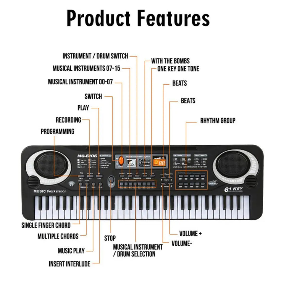 61 Keys Electronic Keyboard Piano for Kids with Microphone, Educational