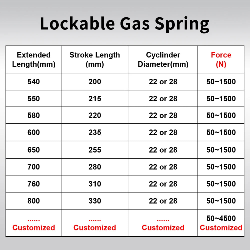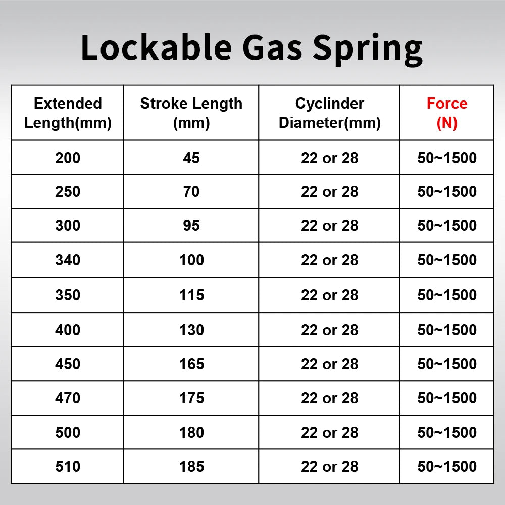 Gas spring only / Consult us for more / Choose the Force as