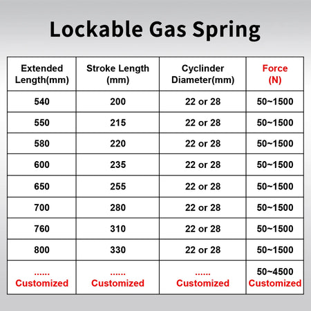 Gas spring only / Extended Length as / Consult us for more