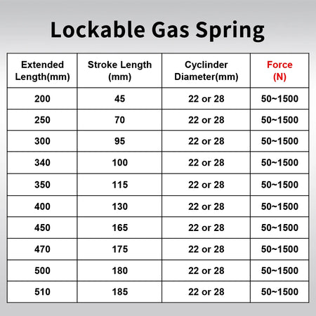 Gas spring only / Extended Length as / Choose the Force as
