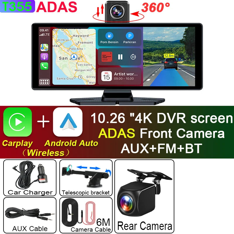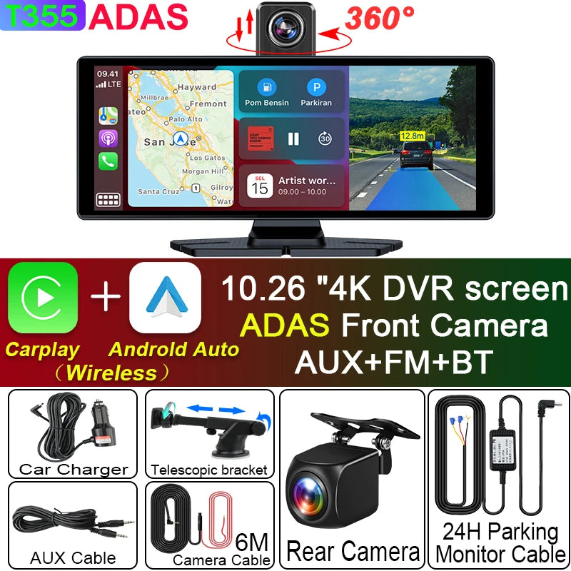 Seznamte se s 10,26 palcovou 4K Dash Cam ADAS s bezdrátovým CarPlay a Android Auto — chytrým, vysoce kvalitním palubním společníkem, který promění vaši jízdu v bezpečnější a chytřejší zážitek. Zachyťte každý okamžik v ohromujícím 4K předním záznamu, zatímco druhý objektiv nahrává v ostrém 1080p, což vám poskytuje kompletní, dvojitý záznam. S funkcemi ADAS, 360stupňovým otáčením a 24hodinovým monitorováním parkování vám tato palubní kamera pomáhá předcházet incidentům a chránit vaše vozidlo na silnici. Bezproblémová integrace bezdrátového CarPlay a Android Auto udržuje navigaci, hovory a hudbu na dosah ruky, zatímco vestavěný 10,26palcový IPS dotykový displej poskytuje živé, snadno čitelné přehrávání. Všechna elektronická a mechanická zařízení, přístroje a stroje prodávané společností InterCyprus do zemí EU jsou certifikována CE a mají dvouletou záruku. Poskytujeme kvalitní a důvěryhodné služby od roku 2002 na intercyprus.com.