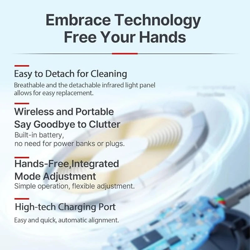 - Udržujte čepici čistou a zajistěte pohodlné nošení pro nejlepší kontakt světla s pokožkou hlavy; vyhněte se přímému vystavení očím.
