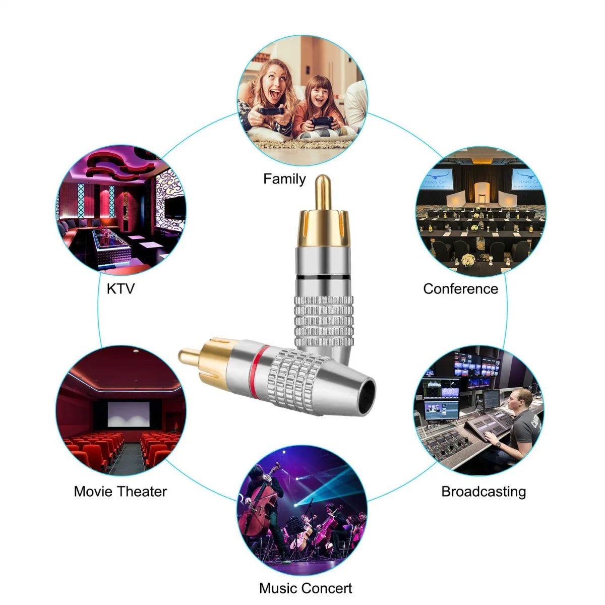 Výhody: Tento RCA mužský konektor eliminuje únavné pájení, zrychluje instalace reproduktorů a audia při zachování jasnosti signálu. Jeho zámkový design a odolný zlatý kontakt snižují problémy s připojením a zlepšují životnost — ideální pro domácí audio, studiové nastavení nebo opravy AV.