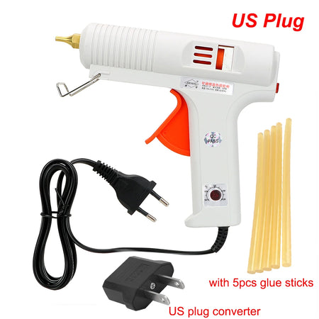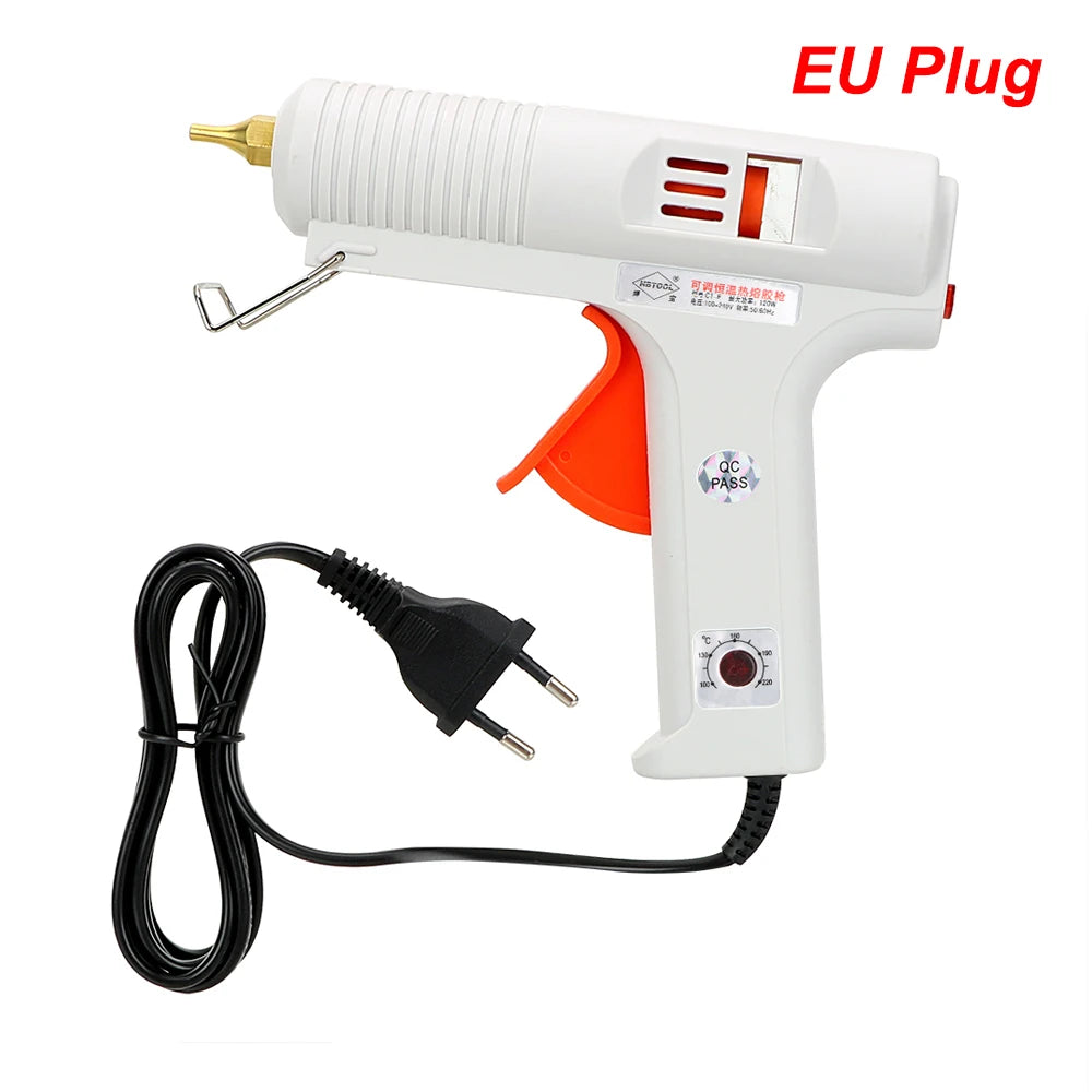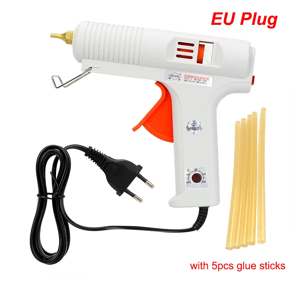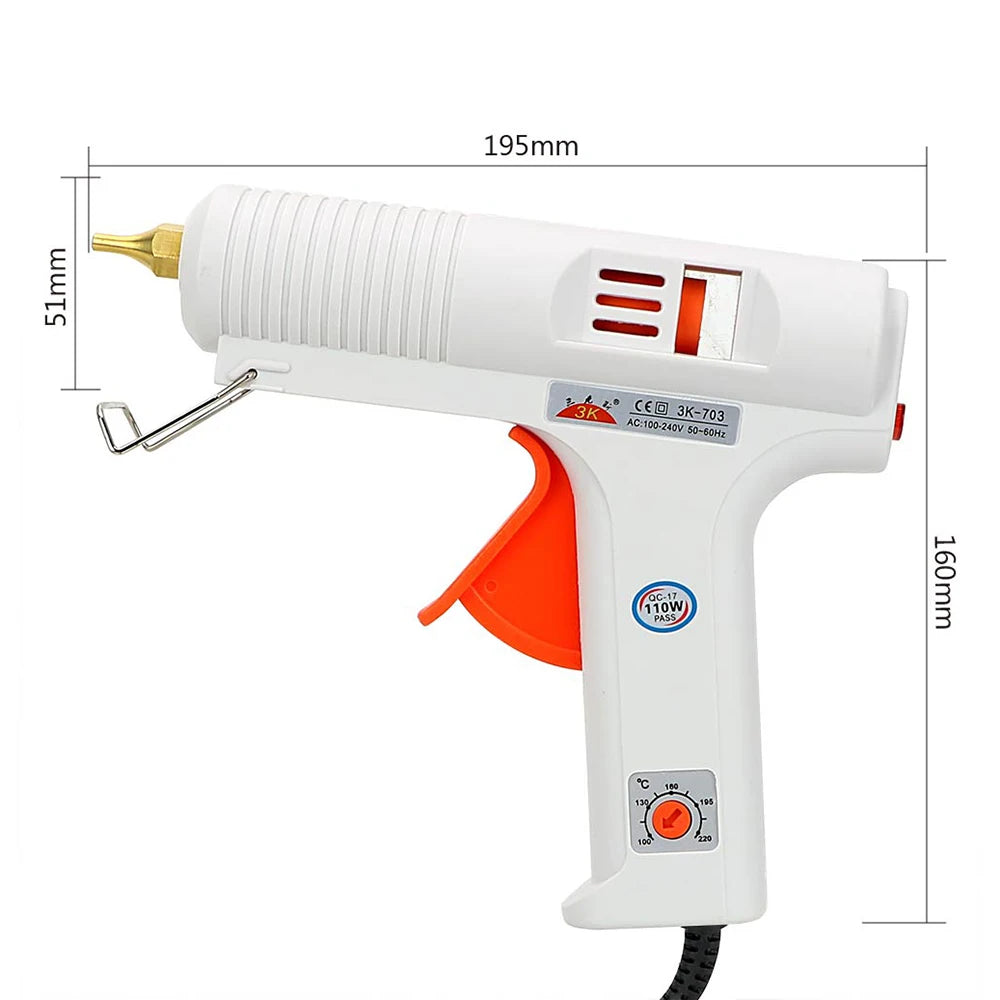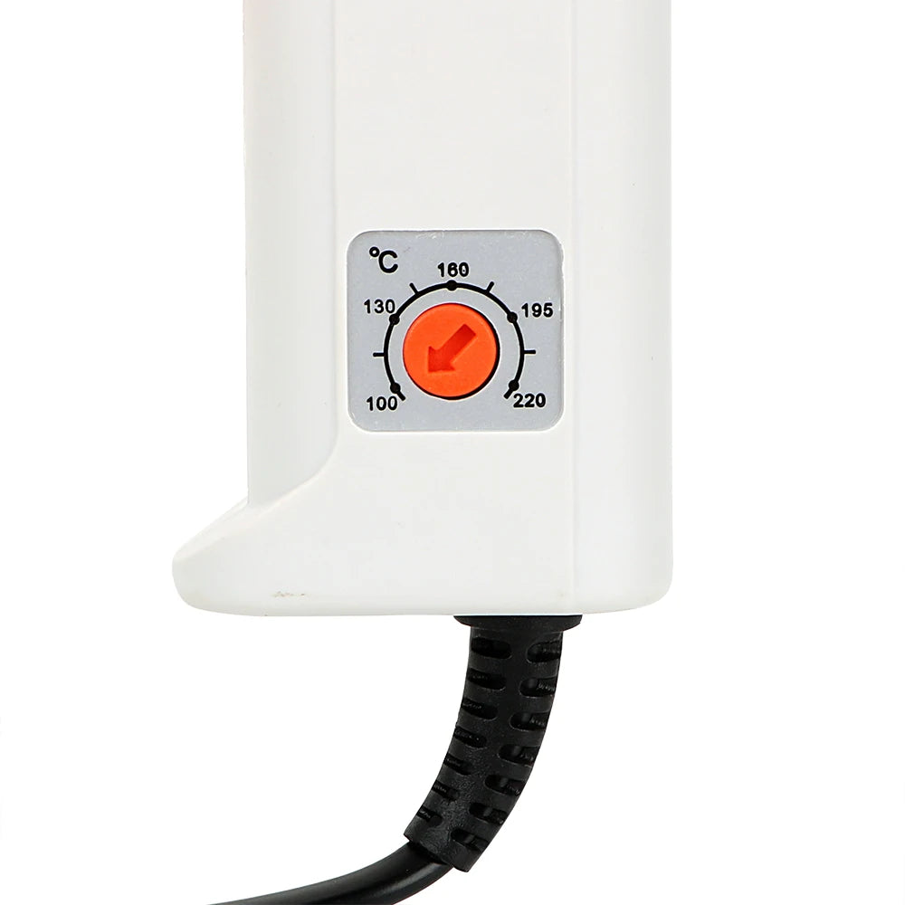- Plynulé ovládání teploty od 100–220°C vám poskytuje přesné teplo pro různé lepidla a materiály, čímž snižuje riziko poškození jemných plastů nebo povrchových úprav.