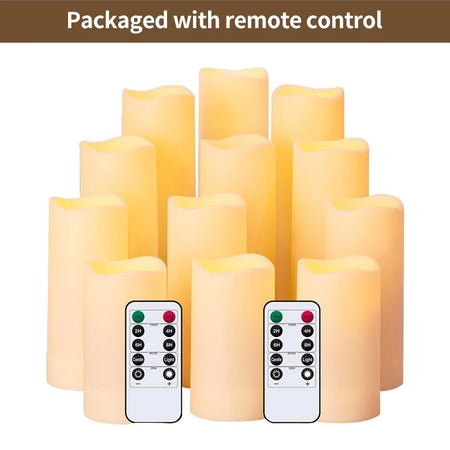 Osvětlete svůj prostor elegancí 12 kusů bezplamenových LED sloupcových svíček pro domov, svatby a akce. Tyto prémiové bezplamenové svíčky kombinují skutečný vzhled vosku s moderní LED technologií, aby poskytly teplé, přirozené světlo bez otevřených plamenů nebo kouře. Ideální pro stoly, středové dekorace, svícny a útulné atmosféry, promění místa a domovy na příjemné, bezpečné prostředí. S dvěma dálkovými ovladači a funkcí časovače můžete snadno a s jistotou nastavit atmosféru.
