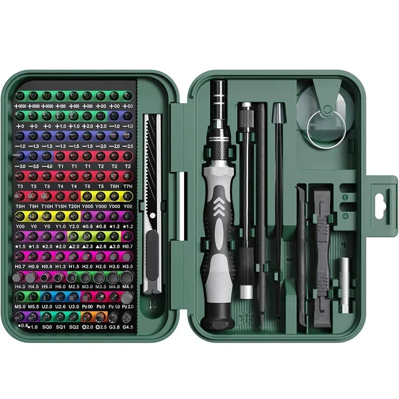 132 v 1 Sada přesných šroubováků – Magnetická sada bitů — kompaktní, multifunkční nástrojový kit navržený pro přesné opravy a montáže. Tato magnetická sada bitů kombinuje odolnost, protiskluzovou rukojeť a širokou škálu bitů pro důvěrné řešení elektroniky, domácích gadgetů a hobby projektů.