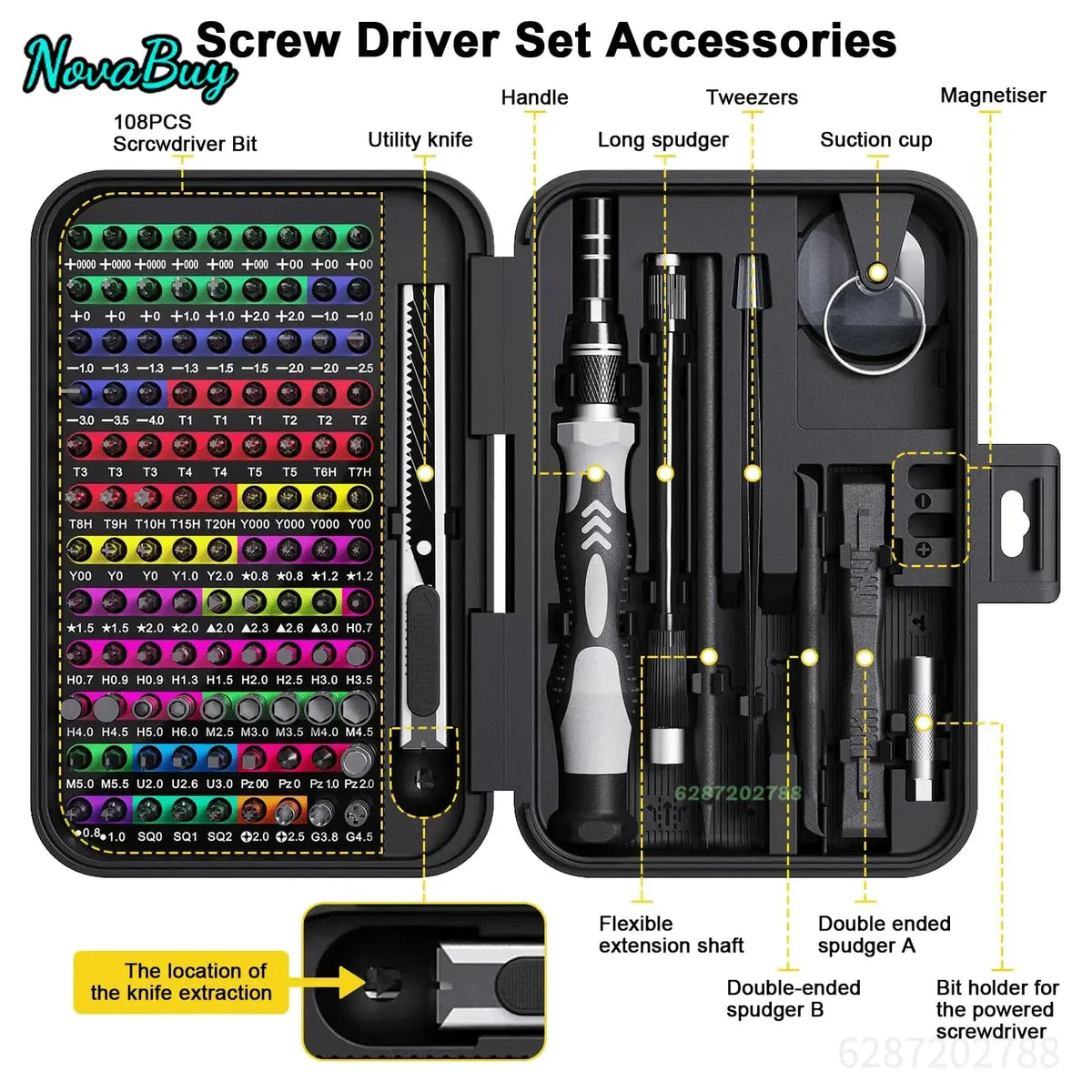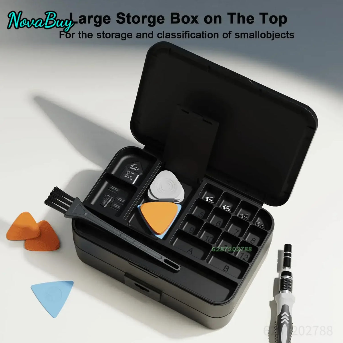 - Obsahuje: Komplexní sbírku bitů, magnetický šroubovák, úložný box