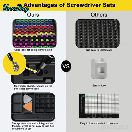 Tento přesný set zjednodušuje opravy tím, že máte správný bit na dosah ruky, zkracuje čas projektu a zabraňuje poškození šroubů. Jeho odolné chrom-vanadiové bity a magnetický držák poskytují přesný kroutící moment a opakovatelné výsledky — ideální pro techniky, nadšence a kutily.
