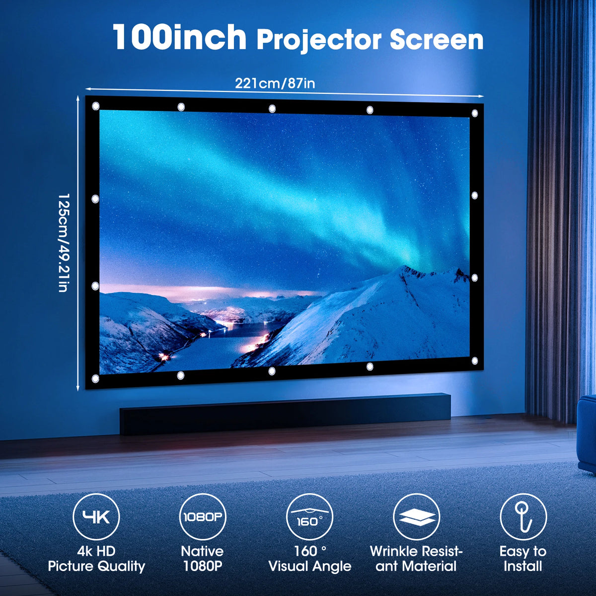 - Skvělé pro pohlcující domácí kino s 100-palcovou úhlopříčkou a poměrem stran 16:9, které poskytuje kinematické vizuály.