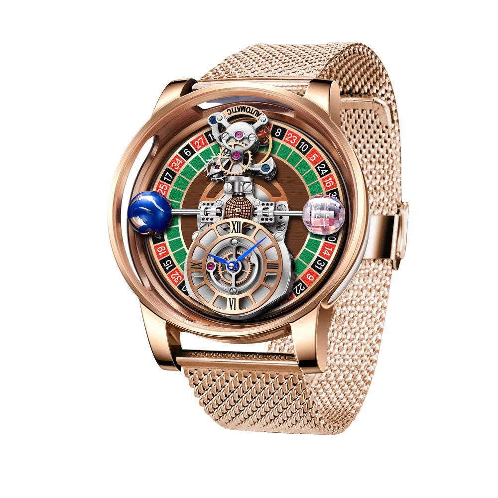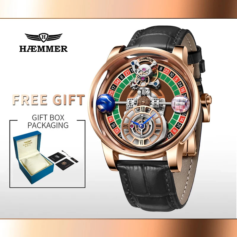 HAEMMER Pánské Hodinky 2025 Transparentní Průhledná Hlava Ruleta Quartz, Nerezová Ocel, Kožený Pásek, Vodotěsné