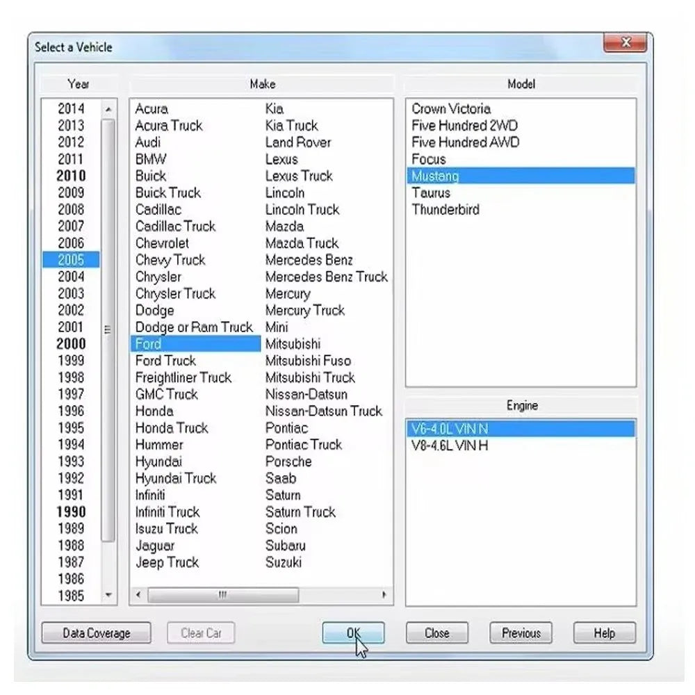 - Pokrytí: Vozidla od roku 1982 do současnosti; zahrnuje diagnostické chybové kódy, plány údržby, TSB a svolávací akce a OE řešení