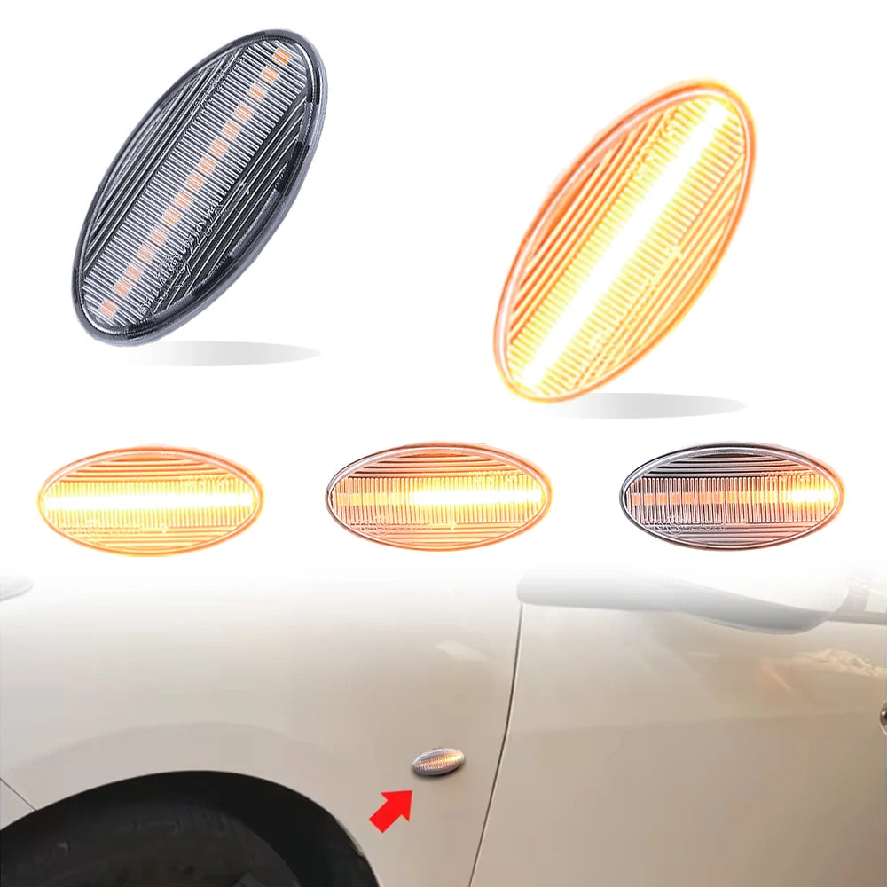 Vylepšete svůj Mazda tímto párem LED dynamických směrových světel bočních markerů navržených pro Mazda 3 (BK) a širokou škálu kompatibilních modelů Mazda. Navrženo pro odvážný, nápadný žlutý záblesk, tyto markery používají dynamické sekvenční signalizace pro zlepšení viditelnosti a jasnější komunikaci vašich odboček ostatním řidičům kolem vás. Kouřové černé pouzdro dodává moderní, nenápadný vzhled, který doplňuje styl vašeho vozu, zatímco žluté osvětlení zajišťuje vysoký kontrast za všech podmínek na silnici. Připraveno k instalaci s jednoduchým plug-and-play nastavením, tyto markery přinášejí svěží, současnou atmosféru bez složitého zapojení.