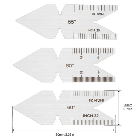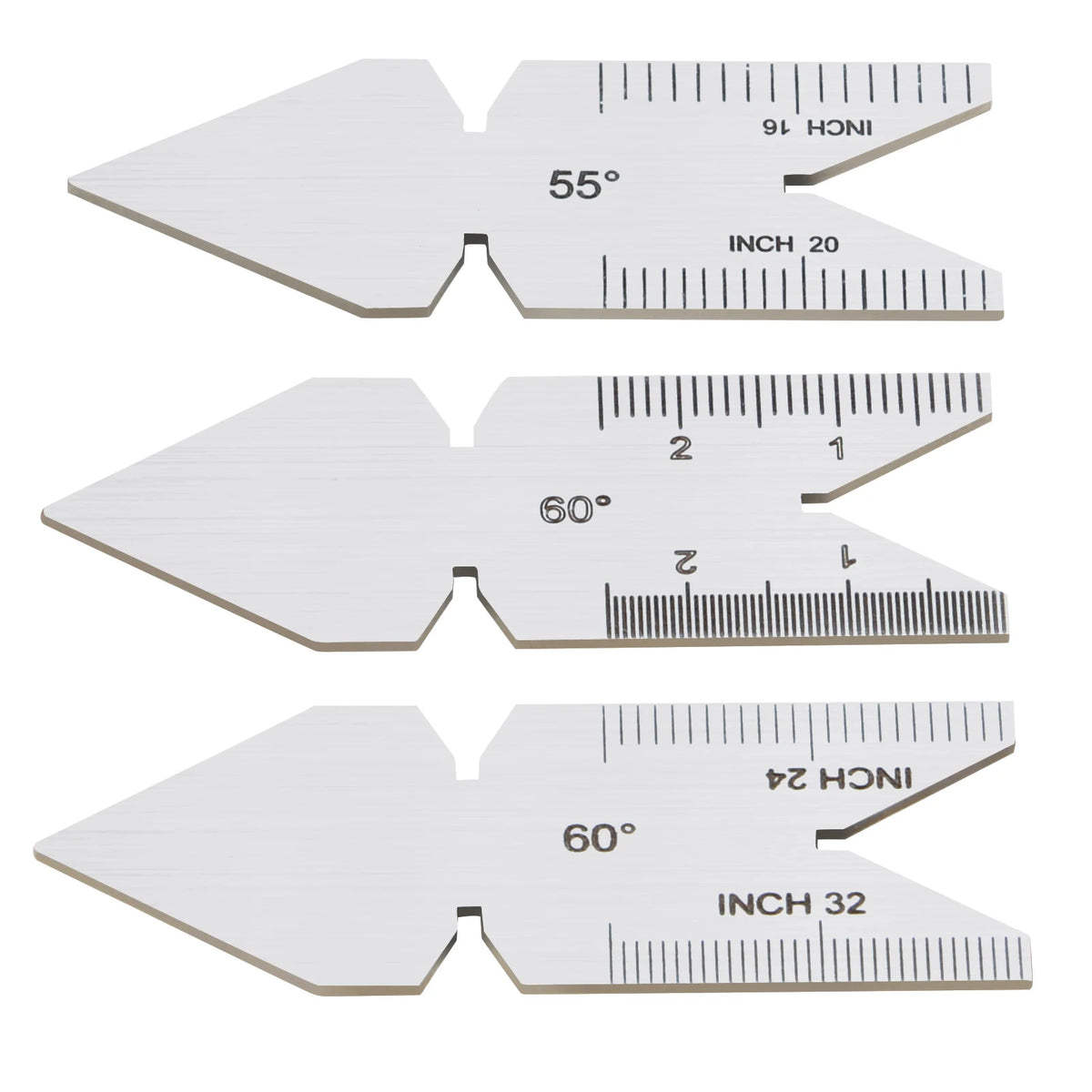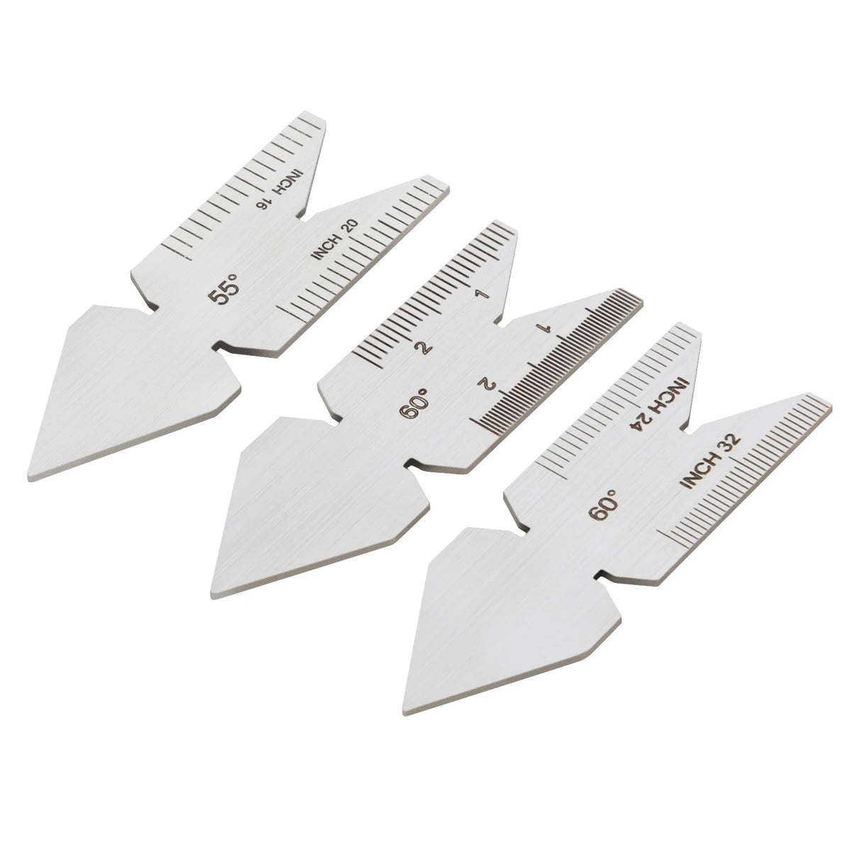 Sada měřičů stoupání závitů z nerezové oceli, 3 kusy Whitworth, US, metrické šablony pro řezání