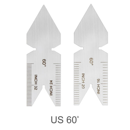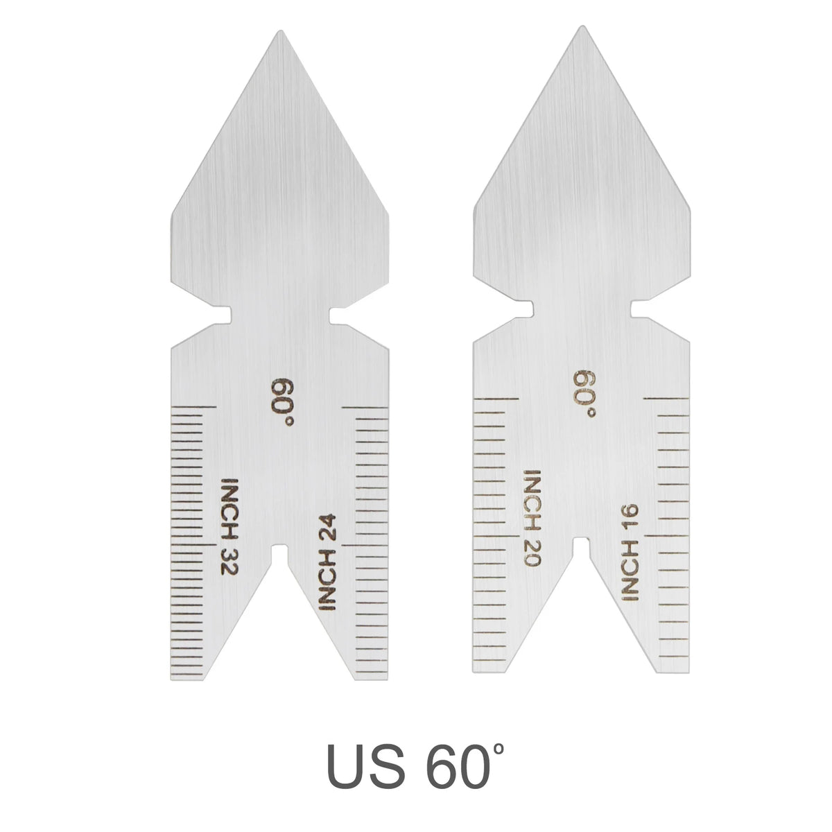 - Měřiče zahrnuté: US 60 stupňový středový měřič; Metrický 60 stupňový středový měřič; Whitworth 55 stupňový středový měřič