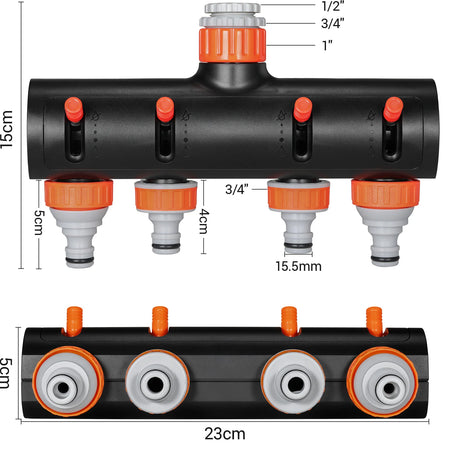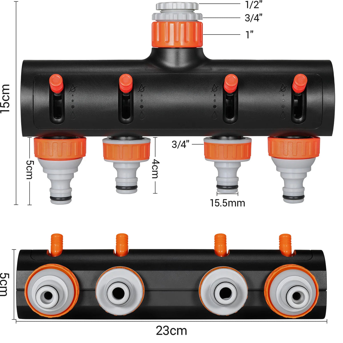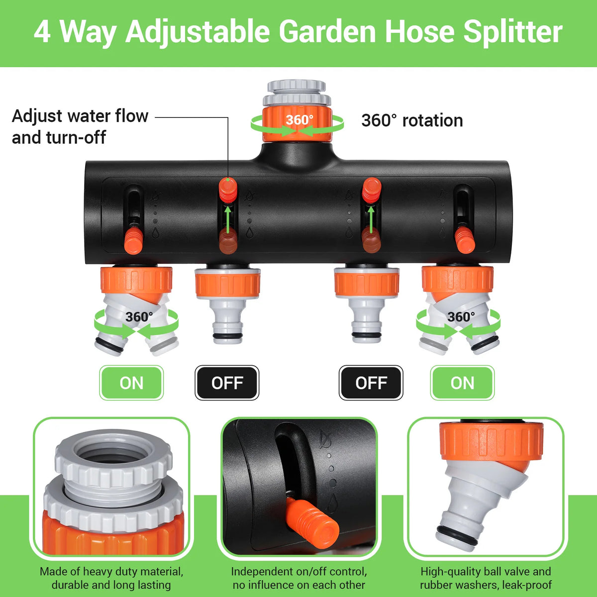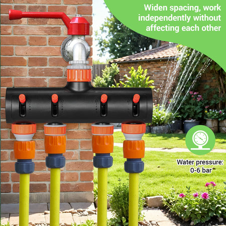Přetvořte jeden kohoutek na všestranné zavlažovací centrum s Fixkit 4 Way Garden Diverter Valve Aluminum ABS Connector. Tento robustní 4-výstupový rozdělovač převádí standardní zahradní kohoutek na čtyři nezávisle nastavitelné proudy, což vám umožní zalévat rostliny, umýt auto nebo napájet kapkovou závlahu, aniž byste se museli vracet ke kohoutku. Vyrobeno z hliníkové slitiny s ABS konektorem, je navrženo pro odolnost, bezúnikový výkon a dlouhou životnost – i při vyšším vodním tlaku. Jednotka má otočné ventily pro každý výstup, takže můžete ovládat nebo vypnout každý řádek jednotlivě. Kompatibilní se standardními evropskými kohoutky a zahradními hadicemi, je to dokonalá aktualizace pro efektivní a organizované zavlažování.