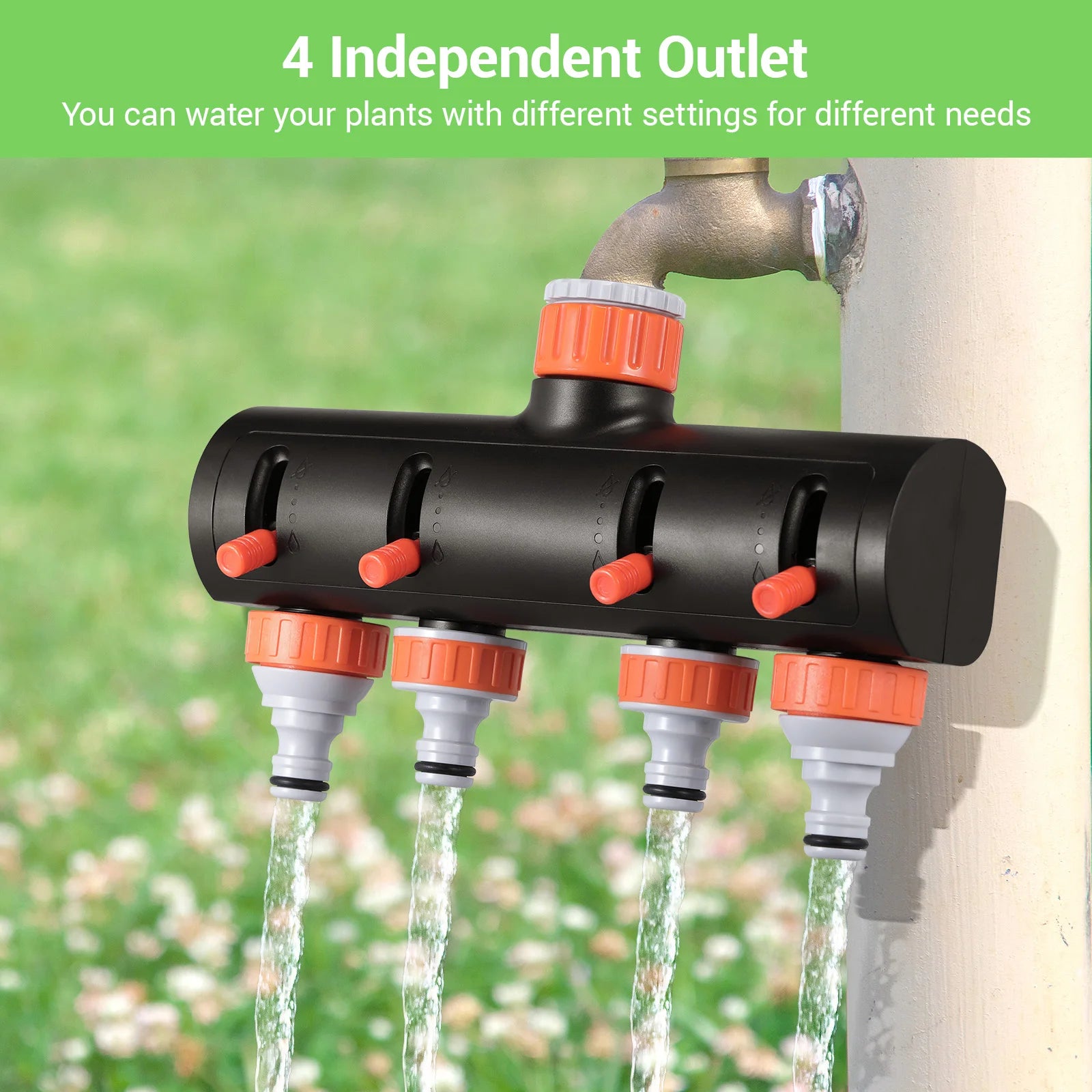 - Nezávisle nastavitelné výstupy vám umožňují přizpůsobit každý vodní proud – užitečné pro cílené zavlažování, zatímco ostatní oblasti zůstanou suché.