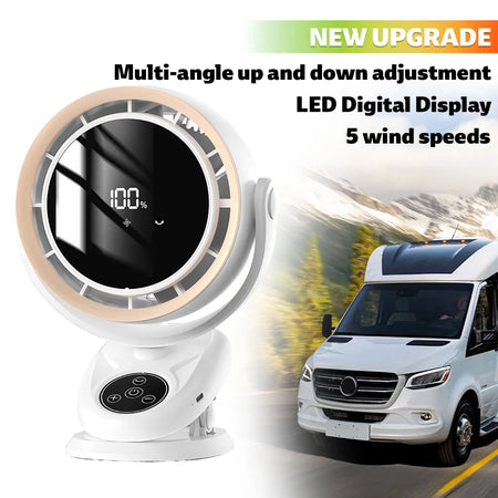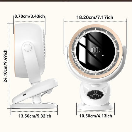 4000mAh Oběžný Klipový Stolní Ventilátor s LED Displejem Nabíjecí