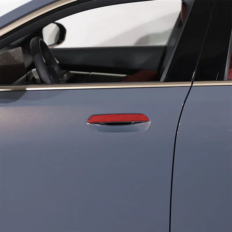 - Chrání kliky dveří před škrábanci a opotřebením, zatímco přidává stylovou estetiku z uhlíkových vláken s červeným akcentem.