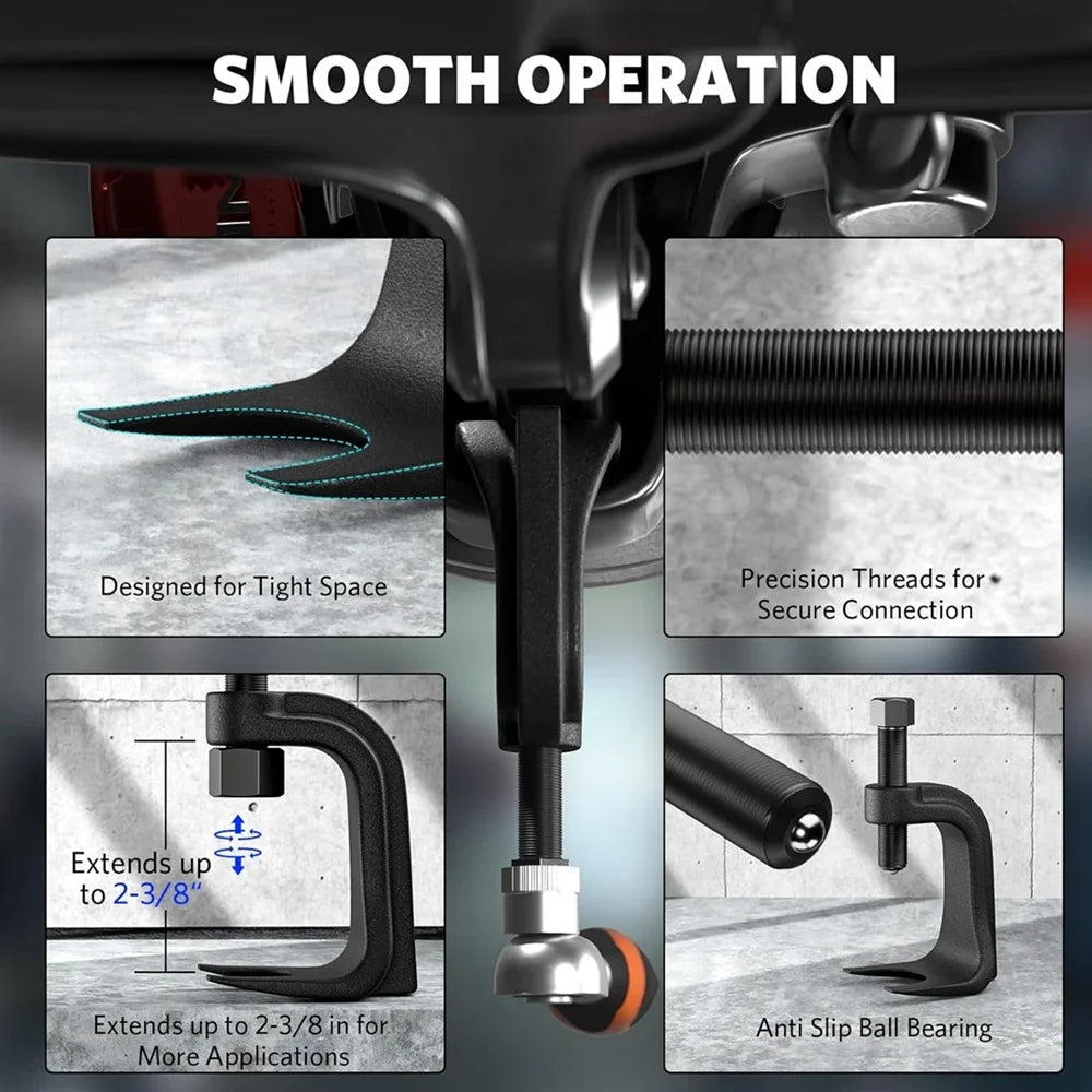 Představujeme univerzální nástroj na vytažení spodní řídící páky a separátor kloubů pro automobily — všestranné, kompaktní řešení navržené tak, aby zjednodušilo práci na odpružení automobilů, dodávek a SUV. Tento dvoufázový nástroj kombinuje přesný separátor kloubů s vysoce odolným nástrojem na vytažení spodní řídící páky, navrženým pro rychlou, bezpečnou a spolehlivou operaci i v těsných motorových prostorech a stísněných kolech. Navržen tak, aby chránil gumové manžety a minimalizoval poškození, je to praktická volba pro nadšence do DIY i profesionální mechaniky.
