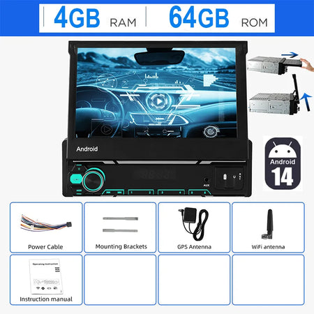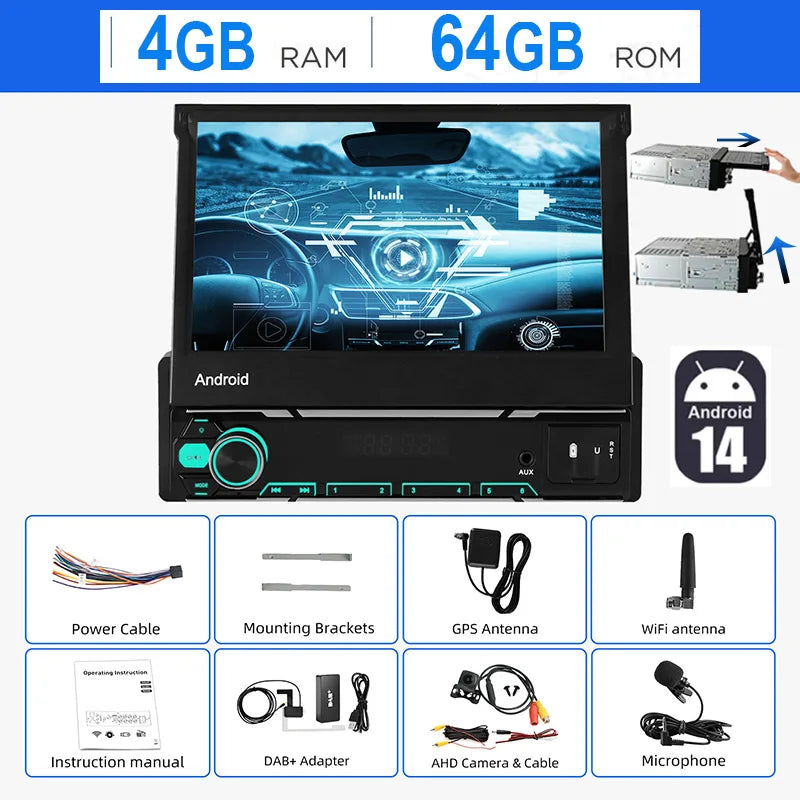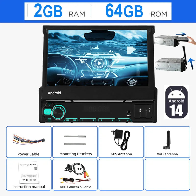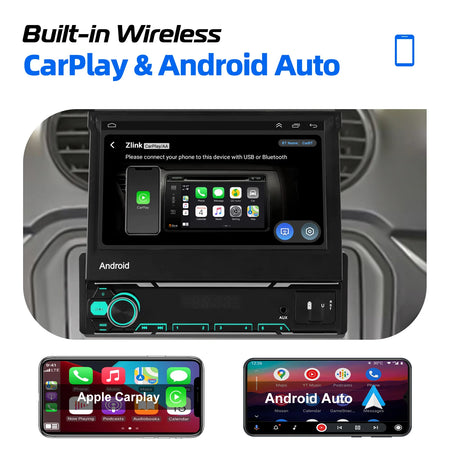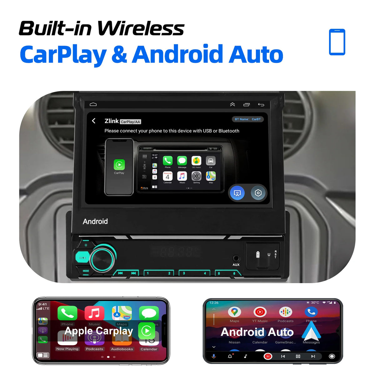 FR7002 7palcové Android 14 autorádio – Bezdrátový CarPlay — Kompaktní 7" Android 14 autorádio, které přináší bezdrátový CarPlay, Bluetooth 5.1 a responzivní čtyřjádrový CPU na váš palubní desku pro chytřejší a bezpečnější zábavu a navigaci v autě.