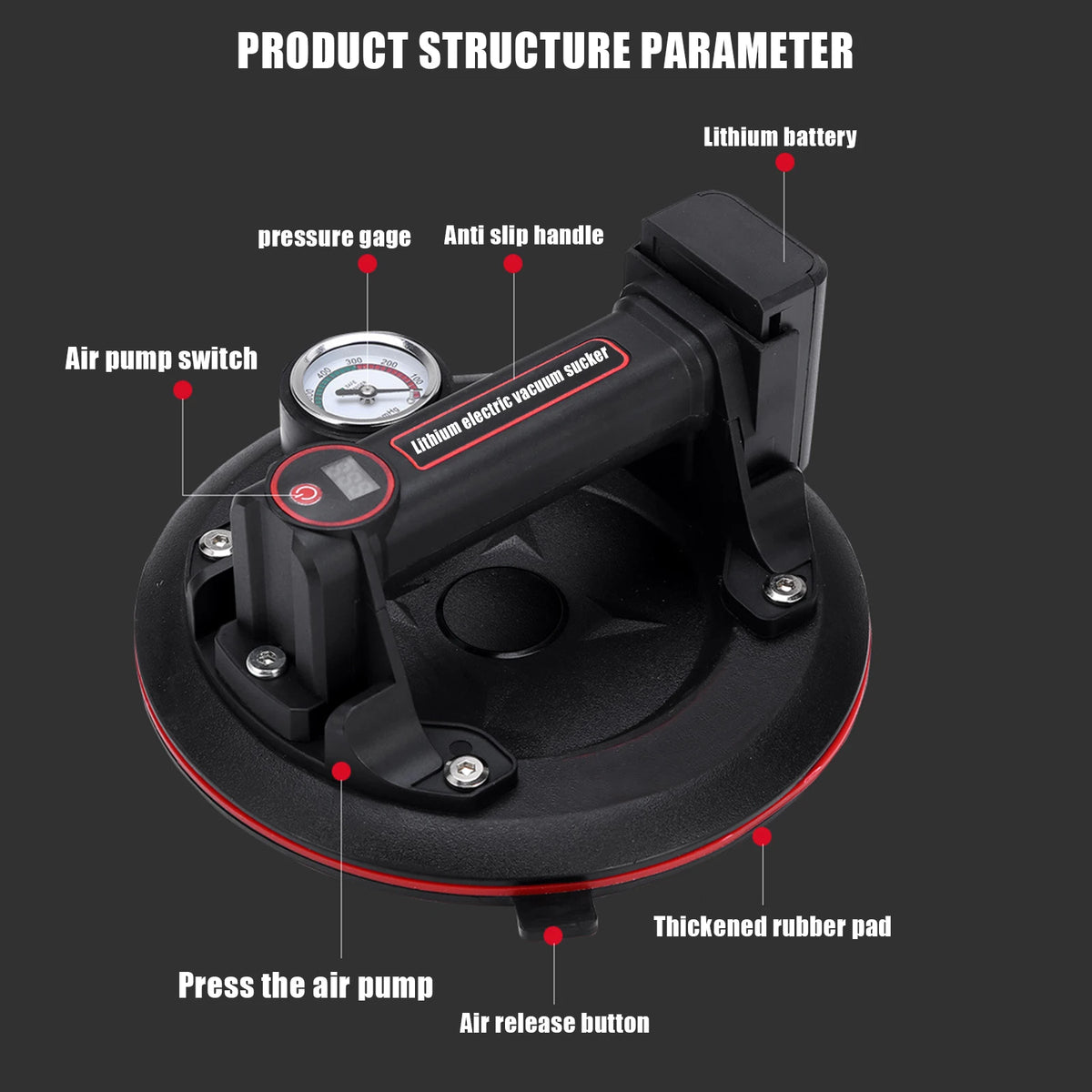 Tento nástroj má 8palcovou dvouvrstvou výfukovou přísavku s robustní nosností 200 kg, což ho činí ideálním pro přepravu dlaždic, skla a kamenů s minimálním úsilím. Inteligentní LED displej poskytuje sledování síly sání a stavu tlaku v reálném čase, zatímco design pro spuštění jedním kliknutím udržuje obsluhu jednoduchou a bezpečnou. Pro zapnutí stiskněte a držte spínač po dobu 2–5 sekund; pro zrušení adsorpce dvojklik. Vypnutí a uvolnění vzduchu jsou rychlé a bezpečné—stiskněte spínač dvakrát za sebou během jedné sekundy, abyste uvolnili přilnavost z dlaždic.